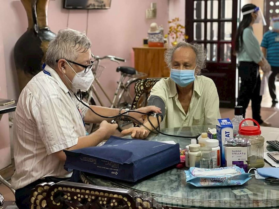 Bác sĩ Nguyễn Thái Hiệp của Trung tâm Y tế quận cùng nhân viên y tế của Trạm Y tế phường Tân Sơn Nhì khám sức khỏe và tiêm vaccine cho các cụ già tại nhà(Thanhuytphcm.vn) – Ngày 13/8, Ban Chỉ đạo phòng, chống Covid-19 quận Tân Phú tổ chức ra quân chiến dịch tiêm vaccine phòng ngừa Covid-19 lưu động tại nhà cho người cao tuổi, sức khỏe yếu và hạn chế về đi lại.