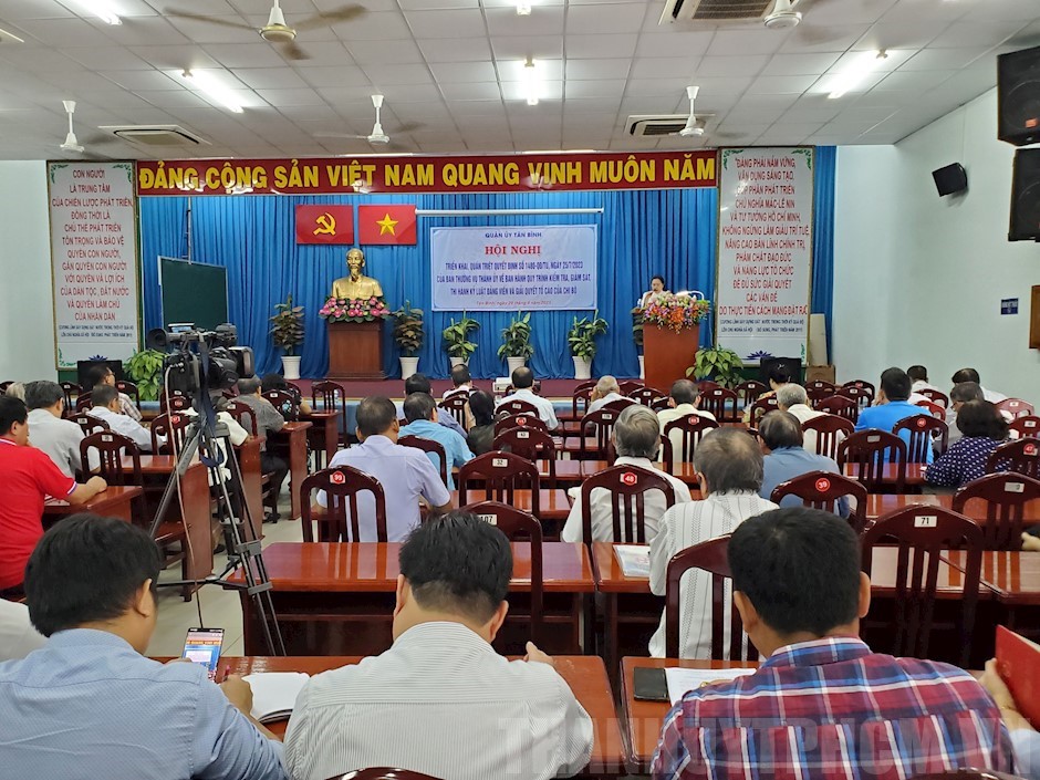 Quang cảnh hội nghị(Thanhuytphcm.vn) - Ngày 29/8, Quận ủy Tân Bình tổ chức hội nghị triển khai, quán triệt Quyết định số 1480-QĐ/TU, ngày 25/7/2023 của Ban Thường vụ Thành ủy về ban hành quy trình kiểm tra, giám sát, thi hành kỷ luật đảng viên và giải quyết tố cáo của chi bộ. Dự và báo cáo tại hội nghị có Ủy viên Ban Thường vụ Quận ủy, Chủ nhiệm Ủy ban Kiểm tra Quận ủy, Nguyễn Ngọc Phú.