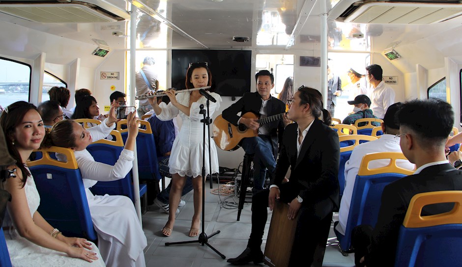 Biểu diễn âm nhạc tại buổi ra mắt chương trình trên tuyến Bus đường sông(Thanhuytphcm.vn) - Ngày 17/3, dự án nghệ thuật cộng đồng “Có hẹn với Sài Gòn” chính thức ra mắt tại bến Bạch Đằng. Chương trình với mục đích mang đến những bữa tiệc âm nhạc sôi động, chất lượng nhằm phục vụ cho người dân và du khách khi đến với công viên Bến Bạch Đằng vào mỗi chiều cuối tuần.