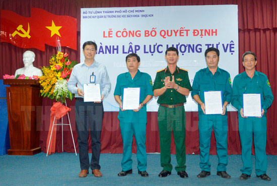 (Thanhuytphcm.vn) - Chiều 28/3, Trường Đại học Bách Khoa - ĐHQG TPHCM tổ chức lễ công bố quyết định thành lập và ra mắt Ban Chỉ huy Quân sự của trường. Đến dự có Đại tá Lê Ngọc Hải, Phó Tư lệnh Bộ Tư lệnh TPHCM.