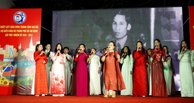 NSƯT Quỳnh Liên và các ca sĩ Chi hội Thanh nhạc và hợp xướng - CLB Nữ nghệ sĩ Thành phố biểu diễn bài hát "Bài ca Hồ Chí Minh". (Ảnh: SGGP)Tối 5/2, tại UBND phường Xuân Hòa (TPHCM), Đảng ủy - HĐND - UBND - Ủy ban MTTQ Việt Nam phường Xuân Hòa phối hợp với Hội Âm nhạc TPHCM - Chi hội Thanh nhạc và hợp xướng - CLB Nữ nghệ sĩ Thành phố tổ chức Chương trình Âm nhạc xuống phố kỳ 74, chủ đề Giai điệu yêu thương - Mừng xuân, dâng Đảng.