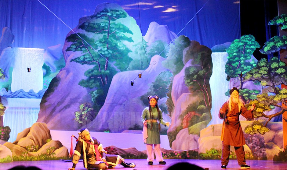 NSƯT Mỹ Uyên có vai diễn phá cách trong Duyên ai trên Sân khấu Nhỏ 5B. (Ảnh: Thanh Hiệp).Cùng với đó, cả 3 đoàn của Nhà hát đều tái dựng những vở diễn ăn khách trước đây để phục vụ khán giả. Trong đó, Rể quý của Đoàn 1 (Mùng 6 Tết) là vở cải lương hài châm biếm tình trạng say xỉn ngày Tết, được khán giả yêu thích và yêu cầu diễn lại vào mỗi dịp Tết. Đoàn 2 tái dựng vở cải lương nổi tiếng Trà Hoa Nữ với ê-kíp diễn viên trẻ (Mùng 7 Tết). Đoàn 3 quyết định tái dựng vở cải lương mang màu sắc liêu trai Thanh Xà - Bạch Xà (từng thành công trên sân khấu nhóm Thắp sáng niềm tin hơn 10 năm trước) và ra mắt vào Mùng 8 Tết. Lần này, đạo diễn trẻ Lê Trung Thảo bồi đắp thêm cho vở nhiều mảng miếng thu hút khán giả, như những cảnh chiến đấu, cảnh đấu phép bay lượn, cảnh dâng nước… Vở diễn quy tụ lực lượng nghệ sĩ trẻ được yêu thích hiện nay: NSƯT Lê Tứ, NSƯT Lê Hồng Thắm, nghệ sĩ Thy Trang, Võ Minh Lâm…