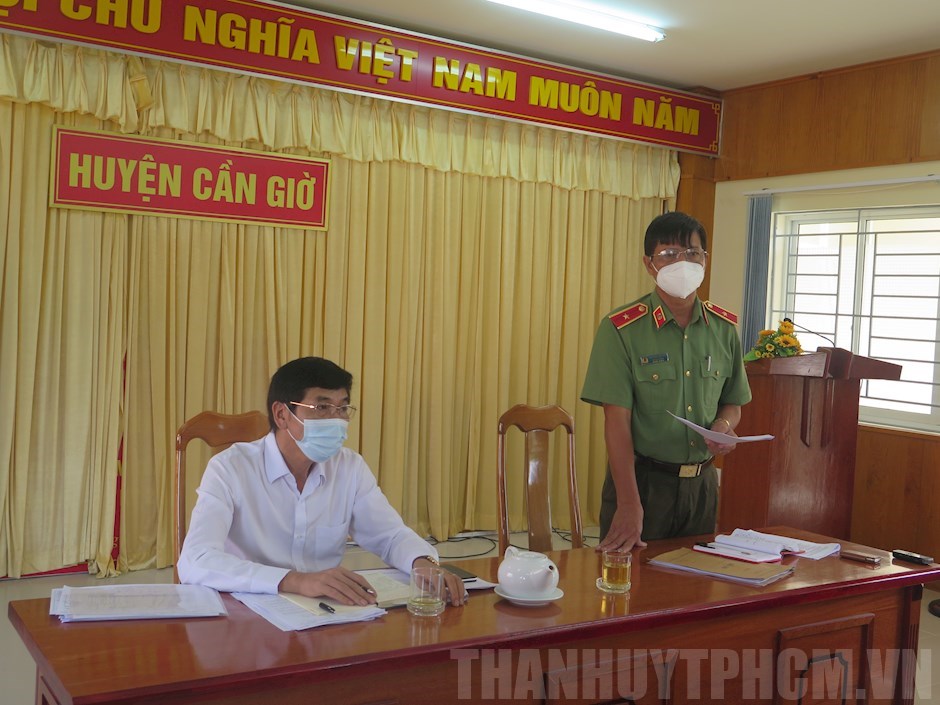 Phát biểu tại buổi làm việc, Thiếu tướng Nguyễn Văn Đức, Tổ trưởng Tổ công tác của Bộ chỉ huy tiền phương Bộ Công an biểu dương kết quả đạt được trong công tác phòng, chống dịch Covid-19, huyện Cần Giờ luôn có sự chủ động rất cao, quán triệt đầy đủ các Chủ trương, chỉ đạo từ Trung ương, Thành phố. Đồng thời có sự vào cuộc của cả hệ thống chính trị từ huyện đến xã, thị trấn một cách chủ động, quyết liệt, khẩn trương, đồng bộ. Đặc biệt là được sự đồng lòng, chia sẻ và chấp hành mạnh mẽ của các tầng lớp Nhân dân trên địa bàn huyện, đã góp phần hạn chế số ca, nguy cơ lây nhiễm trên địa bàn.