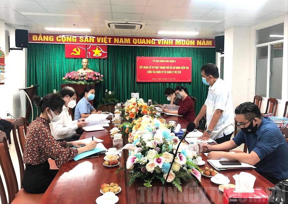 Báo cáo tại buổi làm việc, đại diện Phòng Tư pháp Quận 6 cho biết, thời gian qua, Phòng đã triển khai đồng bộ, toàn diện, có trọng tâm các nhiệm vụ được giao trong công tác hộ tịch trên địa bàn. Công chức tư pháp, hộ tịch được tham gia các lớp bồi dưỡng nghiệp vụ về hộ tịch; có ý thức, trách nhiệm, chủ động nghiên cứu và đề xuất cách giải quyết đối với những trường hợp đăng ký hộ tịch có tính chất phức tạp; ứng dụng công nghệ thông tin để trao đổi và hướng dẫn người dân về các thủ tục. Trong thời gian TPHCM thực hiện giãn cách xã hội, Phòng đã kết nối, hướng dẫn người dân nộp hồ sơ về đăng ký kết hôn, khai sinh, khai tử… bằng cách chụp hình hồ sơ và gửi qua ứng dụng Zalo. Việc ứng dụng công nghệ thông tin vào việc số hóa sổ hộ tịch đã góp phần giải quyết nhanh chóng việc cấp trích lục hộ tịch cho người dân và tra cứu hộ tịch cho cơ quan chức năng khi có yêu cầu. Từ ngày 1/7/2020 đến 30/6/2021, Phòng đã tiếp nhận và giải quyết 1.226 trường hợp trực tuyến.
