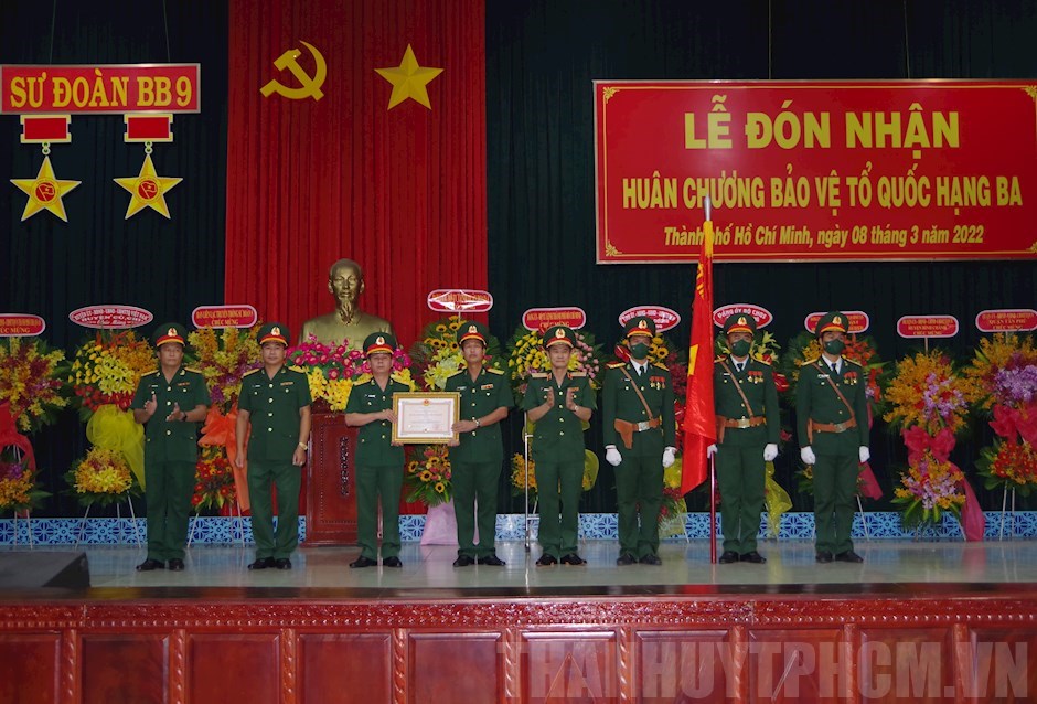 Thiếu tướng Lương Đình Lành, Tư lệnh Quân đoàn 4 trao Huân chương Bảo vệ Tổ quốc hạng Ba cho Đại tá Trần Công Đức, Sư đoàn trưởng Sư đoàn 9Đồng chí yêu cầu thời gian tới, Đảng ủy, chỉ huy Sư đoàn 9 tiếp tục làm tốt công tác chính trị, tư tưởng cho cán bộ, chiến sĩ xây dựng bản lĩnh, học tập những tấm gương chiến đấu, dũng cảm, ý chí quyết tâm vượt qua thử thách, khó khăn để cán bộ, chiến sĩ Sư đoàn 9 luôn giữ vững thành tích đạt được; nâng cao chất lượng huấn luyện, sẵn sàng chiến đấu, chấp hành nghiêm pháp luật Nhà nước, kỷ luật Quân đội; hoàn thành xuất sắc nhiệm vụ được giao, góp phần xây dựng đơn vị vững mạnh toàn diện“mẫu mực, tiêu biểu”.