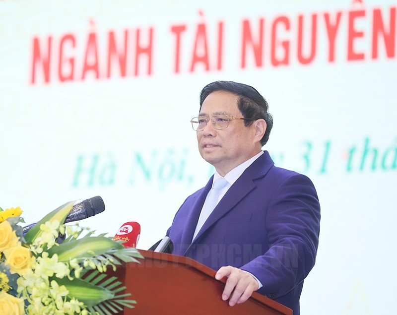 Phát biểu tại hội nghị, Thủ tướng Phạm Minh Chính phân tích thêm về vị trí, vai trò, tầm quan trọng của ngành TN-MT và nêu rõ, cùng với con người và truyền thống lịch sử-văn hóa, thì thiên nhiên với các nguồn tài nguyên là một trong những nguồn lực bên trong mang ý nghĩa cơ bản, chiến lược, lâu dài, quyết định để phát triển đất nước.