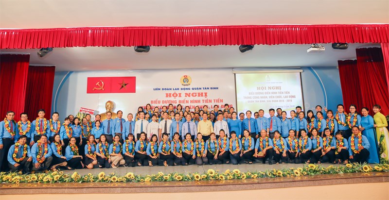 Lãnh đạo LĐLĐ TP và quận chụp hình lưu niệm cùng các tập thể, các nhân có thành tích xuất sắc trong phong trào thi đua yêu nước trong CNVC-LĐ quận giai đoạn 2015 - 2019.(Thanhuytphcm.vn) - Ngày 28/5, Liên đoàn Lao động quận Tân Bình tổ chức hội nghị điển hình tiên tiến trong công nhân viên chức, lao động giai đoạn 2015 - 2019. Đến dự có các đồng chí: Trần Đoàn Trung, Phó Chủ tịch Thường trực LĐLĐ TP; Kiều Ngọc Vũ, Phó Chủ tịch LĐLĐ TP; Lê Hoàng Hà, Bí thư Quận ủy…