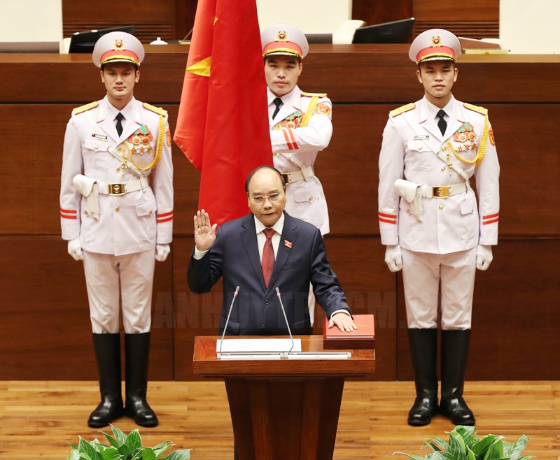 Ngay sau đó, tân Chủ tịch nước Nguyễn Xuân Phúc đã thực hiện nghi thức tuyên thệ nhậm chức trước Quốc hội và quốc dân đồng bào. Tân Chủ tịch nước Nguyễn Xuân Phúc tuyên thệ: "Trước cờ đỏ sao vàng thiêng liêng, trước Quốc hội, trước đồng bào cử tri cả nước, tôi - Chủ tịch nước Nguyễn Xuân Phúc xin tuyên thệ: Tuyệt đối trung thành với Tổ quốc, với nhân dân và Hiến pháp nước Cộng hòa Xã hội chủ nghĩa Việt Nam. Tôi nguyện nỗ lực rèn luyện phấn đấu hoàn thành tốt nhiệm vụ Đảng, Nhà nước và nhân dân giao phó".