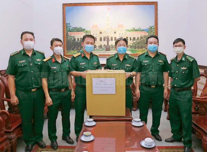 Thượng tá Đinh Đức Thành, Trưởng ban Tuyên huấn, Phòng Chính trị, Trường Sỹ quan Lục quân 2 cho biết, trước tình hình dịch bệnh Covid-19 diễn biến phức tạp, thấu hiểu sự khó khăn, vất vả của cán bộ, chiến sỹ Bộ đội Biên phòng TPHCM trong thời gian chống dịch, Trường Sỹ quan Lục quân 2 đã vận động Công ty TNHH Sản xuất Thương mại Thiết bị Nam Anh hỗ trợ 20.000 khẩu trang y tế và tổ chức trao tặng cho cán bộ, chiến sỹ.