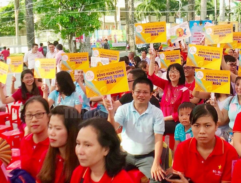 Người dân tham gia lễ mít tinh phòng chống HIV/AIDS và Ngày thế giới phòng chống HIV/AIDS ngày 1/12/2018.(Thanhuytphcm.vn) – UBND TPHCM vừa có báo cáo số 214/BC-UBND về kết quả thực hiện công tác phòng, chống AIDS và phòng, chống tệ nạn ma túy, mại dâm trên địa bàn TP năm 2018.