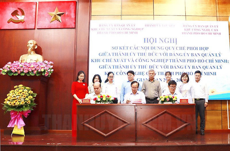 Tại hội nghị, Thành ủy Thủ Đức ký kết quy chế phối hợp với Đảng ủy BQL KCX-KCN TPHCM và Đảng ủy BQL Khu Công nghệ cao TPHCM giai đoạn 2024 – 2025. Đây là hoạt động thường niên nhằm đánh giá lại kết quả hoạt động phối hợp trong công tác chăm lo đời sống vật chất, tinh thần cho công nhân lao động cũng như đảm bảo tình hình an ninh trật tự và xây dựng lực lượng chính trị nòng cốt trong các doanh nghiệp khu vực ngoài nhà nước trên địa bàn TP Thủ Đức năm 2023; đồng thời, triển khai kế hoạch thực hiện các nội dung phối hợp giữa các bên năm 2024…