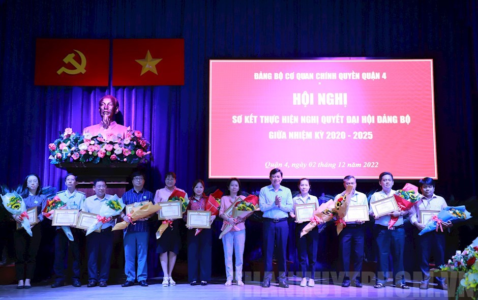 Dịp này, Đảng bộ Cơ quan Chính quyền Quận 4 đã trao Giấy khen cho 11 tập thể và 10 cá nhân có thành tích tốt trong thực hiện Nghị quyết Đại hội Đảng bộ giữa nhiệm kỳ 2020 – 2025.