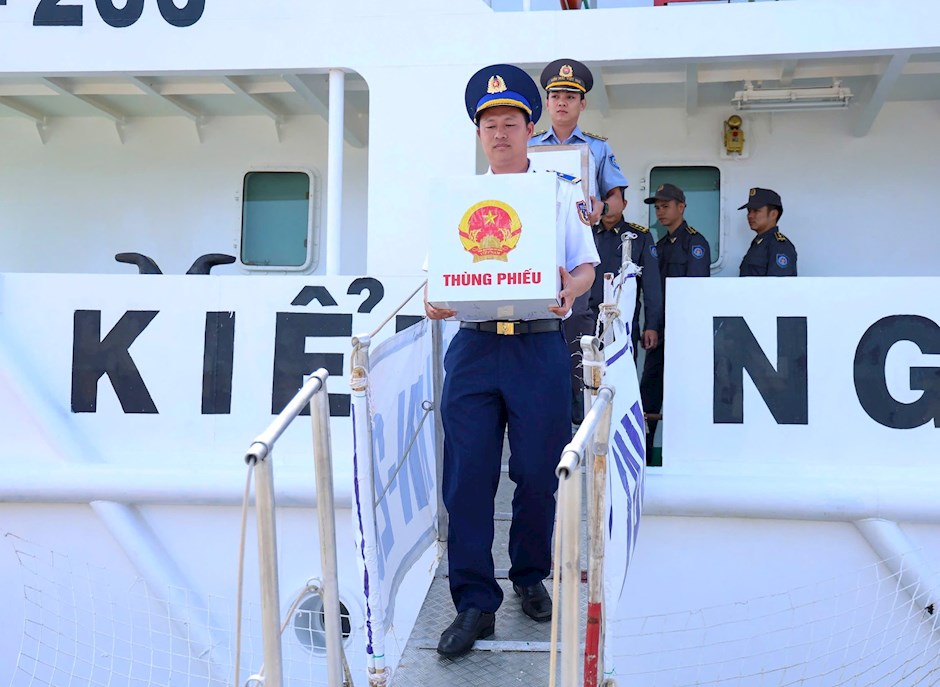 * Cũng trong chiều 6/3, Bộ Tư lệnh Vùng 2 Hải quân cho biết, Đoàn công tác 01, Tổ bầu cử sớm của đơn vị đã hoàn thành nhiệm vụ tổ chức bỏ phiếu sớm cho cử tri thuộc cụm Ba Kè, là cán bộ, chiến sĩ Nhà giàn DK1/9, DK1/20 và DK1/21, thuộc Tiểu đoàn DK1 và ngư dân đang khai thác thủy hải sản quanh khu vực.