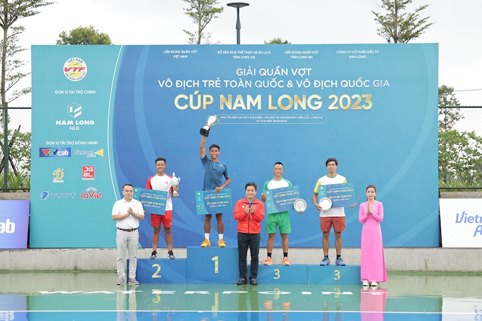Đôi vận động viên TPHCM Nguyễn Minh Phát - Phạm Minh Tuấn (áo trắng) vô địch nội dung đôi nam. Ảnh-VTFTuy nhiên, ở chung kết, Vũ Hà Minh Đức đã tỏ ra vượt trội hơn. Sau gần 2 giờ đồng hồ thi đấu, tay vợt của CLB Hải Đăng đã có được chiến thắng 6-1, 6-3. Đây cũng là lần đầu tiên Vũ Hà Minh Đức có được chức vô địch ở giải quần vợt hàng đầu tại Việt Nam, còn Từ Lê Khánh Duy chấp nhận vị trí á quân. Trong khi đó, đồng hạng ba của nội dung đơn nam thuộc về tay vợt kì cựu Hoàng Thành Trung (CLB Quần vợt TPS) và Correa Adrian của TPHCM.