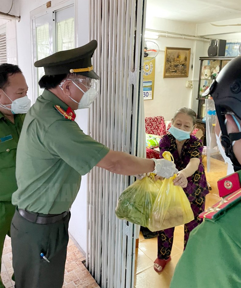 Thay mặt đoàn, Thượng tá Huỳnh Tấn Lê, Phó Trưởng phòng Tổ chức cán bộ Công an TPHCM đã thăm hỏi sức khỏe, đời sống của các cụ và gia đình; chúc các cụ sống lâu, sống vui khỏe với con cháu; mong các cụ tiếp tục là những tấm gương sáng, tích cực động viên con cháu học tập, rèn luyện, góp phần xây dựng địa phương ngày càng phát triển. Đồng chí cũng trao tặng mỗi cụ một xuất quà thể hiện sự quan tâm, lòng thành kính và biết ơn đối với người già neo đơn, người cao tuổi, lớp người có nhiều đóng góp cho sự nghiệp đấu tranh giải phóng dân tộc và xây dựng quê hương trong thời kỳ đổi mới.