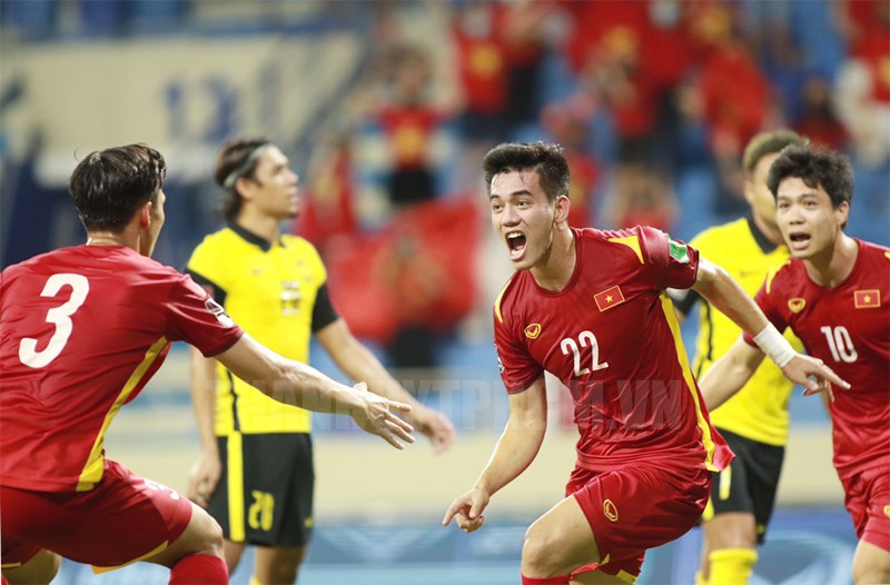 Tiến Linh cùng Ngọc Hải vui mừng sau bàn thắng mở tỷ số. (Ảnh: Anh Khoa)(Thanhuytphcm.vn) - Mục tiêu lọt vào vòng loại cuối cùng hướng đến VCK World Cup 2022 của đội tuyển Việt Nam gần thành hiện thực qua chiến thắng 2-1 trước đội tuyển Malaysia vào đêm 11/6.