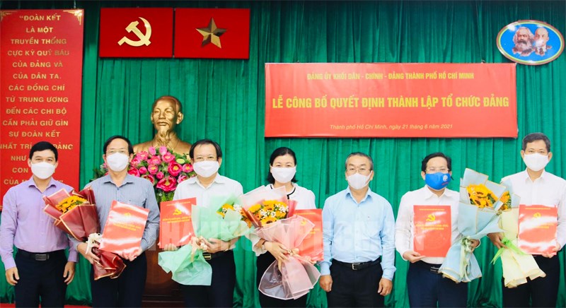 Tại buổi lễ, Trưởng Ban Tổ chức Đảng ủy Khối Dân - Chính - Đảng TPHCM Lê Kim Tuyền đã công bố Quyết định thành lập Đảng bộ, chi bộ cơ sở cơ quan báo chí trực thuộc Khối. Theo đó, thành lập Đảng bộ Báo Người Lao Động, Chi bộ Báo Pháp Luật TP, Chi bộ Báo Phụ Nữ TP, Chi bộ Tạp chí Doanh nhân Sài Gòn, Chi bộ Tạp chí Kinh tế Sài Gòn.
