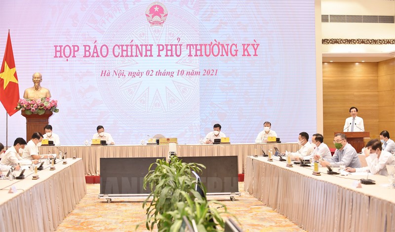 Quang cảnh họp báo.(Thanhuytphcm.vn) - Chiều 2/10, tại Họp báo Chính phủ thường kỳ tháng 9, trả lời câu hỏi của báo giới về vấn đề giá test kit xét nghiệm Covid-19, Thứ trưởng Bộ Y tế Đỗ Xuân Tuyên cho biết, thời gian qua, Bộ đã có nhiều văn bản hướng dẫn để đẩy nhanh tiến độ xét nghiệm cho người dân và công nhân trong doanh nghiệp. Bộ đã hướng dẫn cụ thể đối tượng nào được ưu tiên xét nghiệm sàng lọc và gộp mẫu xét nghiệm. Bộ cũng yêu cầu các đơn vị cung ứng kit xét nghiệm đảm bảo công khai, minh bạch, tạo điều kiện cho các đơn vị đăng ký để đảm bảo cạnh tranh về giá.