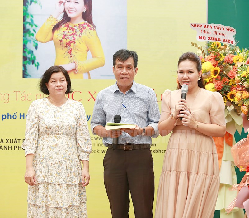 Lãnh đạo Nhà xuất bản Tổng hợp TPHCM tặng hoa chúc mừng tác giả Xuân Hiếu tại buổi giao lưu.(Thanhuytphcm.vn) – Ngày 25/8, tại Đường sách TPHCM, Nhà xuất bản Tổng hợp TPHCM tổ chức chương trình giao lưu ra mắt độc giả tập bút ký “Thanh xuân không chỉ một thời” của tác giả - MC Xuân Hiếu.