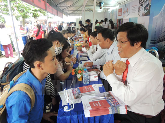 Học sinh tìm hiểu thông tin tuyển sinh năm 2017 tại TPHCM.