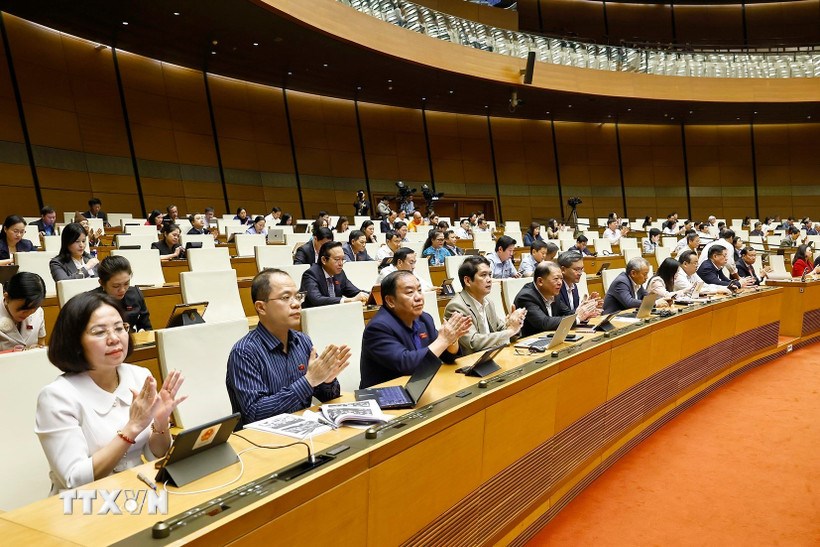 Đại biểu Quốc hội biểu quyết thông qua các luật, nghị quyết. (Ảnh: TTXVN)Lần đầu tiên, Việt Nam ban hành quy định mang tính nền tảng về AI, bao gồm các nguyên tắc trong phát triển và ứng dụng, đặt con người ở vị trí trung tâm, yêu cầu AI phải phục vụ con người.