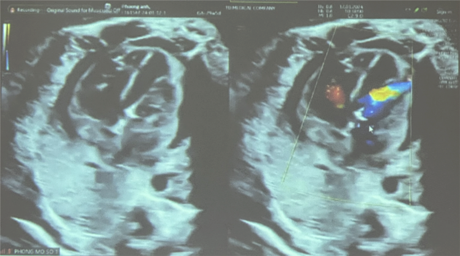 Trước đó, trong quá trình khám thai, chị A được phát hiện bào thai có bất thường về tim lúc thai 21 tuần với chẩn đoán là hẹp van động mạch chủ tiến triển. Thai phụ đã được tiến hành chọc ối xét nghiệm di truyền Array chưa bất thường. Ngày 11/1, thai nhi được 29 tuần với diễn tiến hẹp van động mạch chủ nặng, đường kính van 2.6 mm, vận tốc máu qua van động mạch chủ 300cm/giây, gây thiểu sản thất trái nặng hơn, trào ngược van 2 lá mức độ nặng.