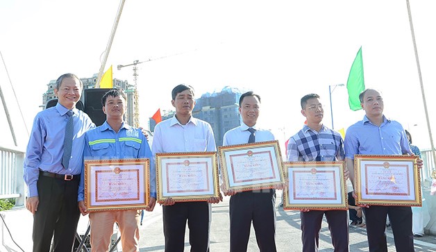 Dịp này, UBND TP tặng Bằng khen cho 2 tập thể và 3 cá nhân có thành tích hoàn thành vượt tiến độ thực hiện công trình.