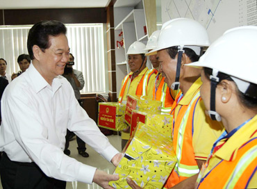 (Website TU) – Chiều 2/2, (tức mùng 3 Tết Giáp Ngọ 2014), Thủ tướng Nguyễn Tấn Dũng đã đến thăm, chúc Tết và động viên cán bộ, công nhân vệ sinh của Công ty TNHH Xử lý chất thải rắn Việt Nam (Vietnam Waste Solutions - VWS) tại xã Đa Phước, huyện Bình Chánh. Tham gia với đoàn có Phó Chủ tịch UBND TPHCM Nguyễn Hữu Tín, cùng các sở ngành của TP.