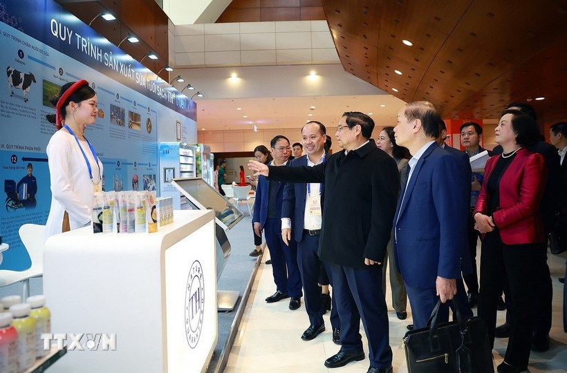 Thủ tướng Phạm Minh Chính kiểm tra khu trung bày các sản phẩm khoa học công nghệ. (Ảnh: TTXVN)Đặc biệt, Thủ tướng Chính phủ và các lãnh đạo đã xem và duyệt toàn thể chương trình chính của Đại hội như văn nghệ chào mừng, phóng sự báo cáo về phong trào thi đua, chương trình giao lưu với các điển hình tiên tiến…