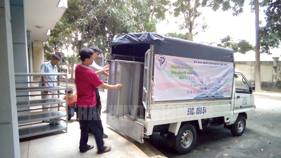 Chuẩn bị đưa sách phục vụ lưu động(Thanhuytphcm.vn) – Quận Thủ Đức là nơi có nhiều người từ các tỉnh về sinh sống, làm ăn, đặc biệt là số lượng công nhân chiếm tỷ lệ cao. Việc quan tâm đến đời sống tinh thần cho công nhân lao động ở các khu công nghiệp – khu chế xuất,.. được các cấp, các ngành quận Thủ Đức quan tâm. Trong đó có sự ra đời của thư viện lưu động, các phòng đọc sách,.. phục vụ công nhân nhà trọ, đã trở thành một nét mới trong đời sống văn hóa của người dân quận Thủ Đức và đem lại niềm phấn khởi cho nhiều công nhân lao động.