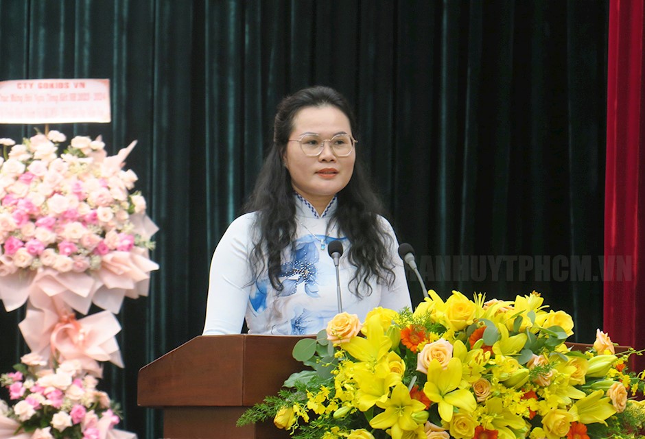Phó Giám đốc Sở GD-ĐT TPHCM Lê Thụy Mỵ Châu phát biểu tại hội nghị(Thanhuytphcm.vn) - Sáng 14/8, Sở Giáo dục và Đào tạo (GD-ĐT) TPHCM tổ chức Hội nghị tổng kết năm học 2023 - 2024 và triển khai nhiệm vụ năm học 2024 - 2025 đối với ngành Giáo dục Mầm non (GDMN).