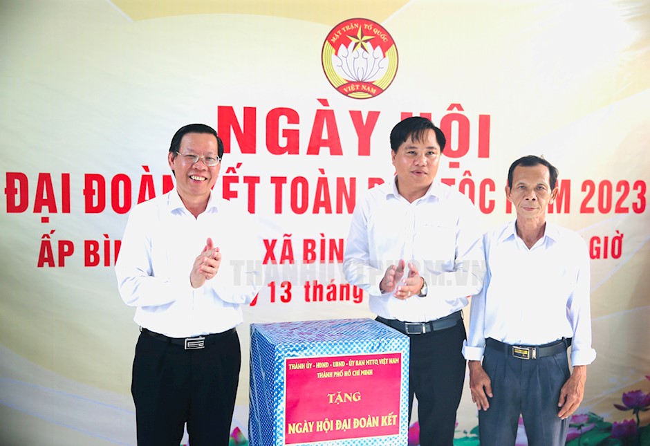 Phát biểu chúc mừng tại ngày hội, Chủ tịch UBND TPHCM Phan Văn Mãi bày tỏ, rất vui được về dự ngày hội Đại đoàn kết toàn dân tộc tại ấp Bình Thuận với nhiều hoạt động văn hóa, văn nghệ, đờn ca tài tử… đồng thời, mong ấp Bình Thuận và các địa phương khác trên địa bàn cố gắng duy trì các hoạt động này, để mỗi khi gặp lại nhau người dân được ăn mặc đẹp, vui vẻ, văn hóa văn nghệ tiếp tục phát triển để đời sống văn hóa làng xã được sôi động, gắn kết và có ý nghĩa. “Đây là nội dung quan trọng xây dựng đời sống văn hóa ở cơ sở” - đồng chí Phan Văn Mãi nhấn mạnh.