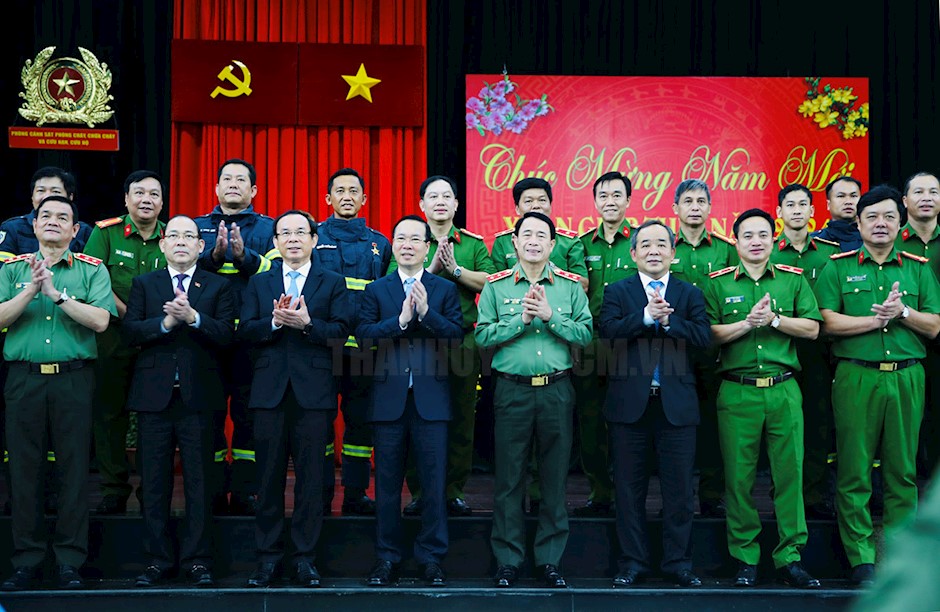 Dịp này, đồng chí Võ Văn Thưởng chúc toàn thể cán bộ, chiến sĩ lực lượng PCCC Công an TPHCM năm mới dồi dào sức khỏe, hạnh phúc; chúc đơn vị hoàn thành xuất sắc nhiệm vụ được giao; bảo đảm giữ vững an ninh trật tự, an toàn xã hội, thực hiện tốt các biện pháp an toàn PCCC, nhất là trong dịp Tết Nguyên đán 2024 sắp tới.