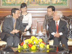 (Website TU)- Tối 10-3, Chủ tịch UBND TPHCM Lê Hoàng Quân đã tiếp tân Đại sứ Trung Quốc tại VN, ông Tôn Quốc Tường đến chào ra mắt nhân dịp nhận nhiệm kỳ công tác tại VN.