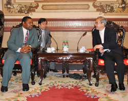 Phó Chủ tịch UBND TPHCM Nguyễn Trung Tín (phải) và Bộ trưởng Nông nghiệp Mozambique Suares Nhaca tại buổi tiếp