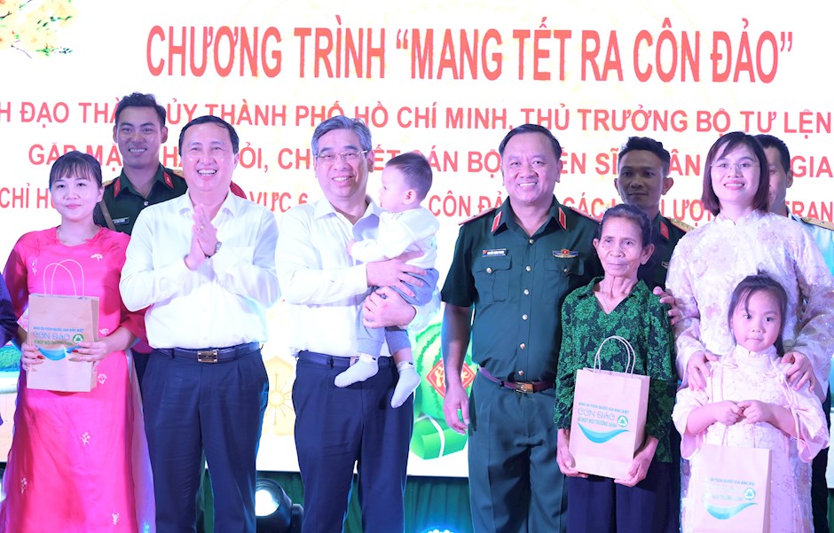 Lần đầu tiên, TPHCM tổ chức chương trình "Mang Tết ra Côn Đảo" đầy ý nghĩa khi hỗ trợ 80 thân nhân cán bộ, chiến sĩ đoàn tụ, đón tết tại đặc khu Côn Đảo đêm Giao thừa. Ảnh: VĂN MINHNgày 23-2, Ban Thường trực Ủy ban MTTQ Việt Nam TPHCM cho biết, TPHCM đã trao hơn 3 triệu phần quà tết đến hộ nghèo, hộ cận nghèo, công nhân, người lao động khó khăn... trong dịp Tết Bính Ngọ 2026.
