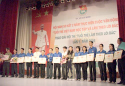 Dịp này, Thành Đoàn TNCS TPHCM đã trao 24 bằng khen của Trung ương Đoàn và 150 giấy khen Thành Đoàn cho các tập thể, cá nhân đạt thành tích xuất sắc trong quá trình tổ chức thực hiện cuộc vận động “Tuổi trẻ Việt Nam học tập và làm theo lời Bác” trong 2 năm 2007 - 2008.