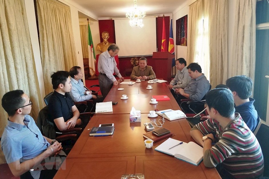 Quang cảnh tọa đàm. (Ảnh: TTXVN)Chiều 2/2, Đại sứ quán Việt Nam tại Algeria đã tổ chức tọa đàm Kỷ niệm 88 năm ngày thành lập Đảng Cộng sản Việt Nam (3/2/1930-3/2/2018) và 50 năm Tổng tiến công và nổi dậy Xuân Mậu Thân 1968.
