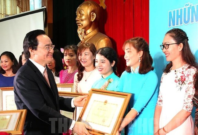 Bộ trưởng Phùng Xuân Nhạ tặng bằng khen cho các giáo viên mầm non điển hình(Thanhuytphcm.vn) – Ngày 16/1, Bộ Giáo dục và đào tạo (GD-ĐT) tổ chức chương trình giao lưu, tôn vinh những tấm gương điển hình tiên tiến cấp học mầm non. 127 giáo viên bậc học mầm non là những tấm gương điển hình đóng góp tích cực trong tổng số hơn 400.000 giáo viên mầm non cho bậc học mầm non cả nước đã được nhận bằng khen của Bộ trưởng Bộ GD-ĐT.