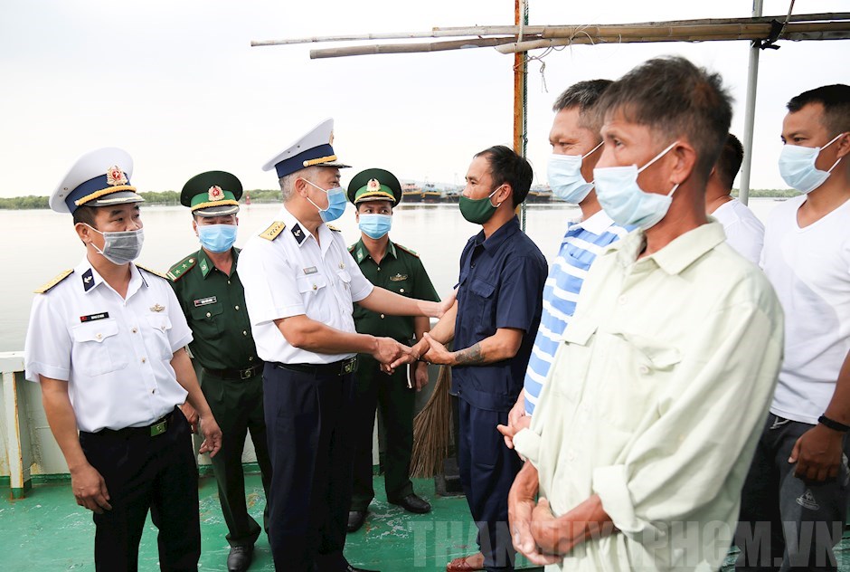 Lãnh đạo Tổng công ty Tân Cảng Sài Gòn và Hải đoàn 128 thăm hỏi, động viên ngư dân(Thanhuytphcm.vn) - Chiều 31/12, Tàu 798, Hải đoàn 128, Tổng công ty Tân Cảng Sài Gòn đã đưa 14 ngư dân tàu cá QNg 96739TS gặp nạn tại Quần đảo Trường Sa về đất liền an toàn.