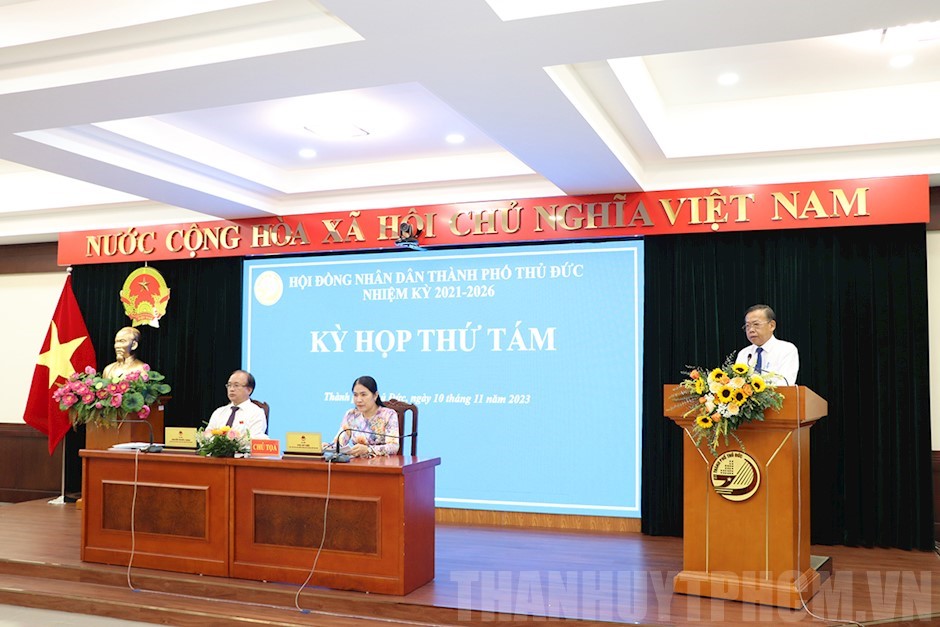 Phát biểu chỉ đạo tại kỳ họp, đồng chí Nguyễn Hữu Hiệp cho biết: Kỳ họp HĐND thành phố lần thứ 8 diễn ra vào thời điểm cả hệ thống chính trị TP Thủ Đức đang quyết tâm hoàn thành các nhiệm vụ chính trị, các chỉ tiêu quan trọng của năm 2023 theo kế hoạch đề ra. Đến thời điểm hiện tại, TP Thủ Đức đã đi qua hơn 3 tháng triển khai thực hiện Nghị quyết số 98/2023/QH15 của Quốc hội về thí điểm một số cơ chế, chính sách đặc thù phát triển TPHCM; Đảng bộ TP Thủ Đức cũng đã xác định quan điểm xuyên suốt để thực hiện thành công Nghị quyết số 98/2023/QH15 của Quốc hội.