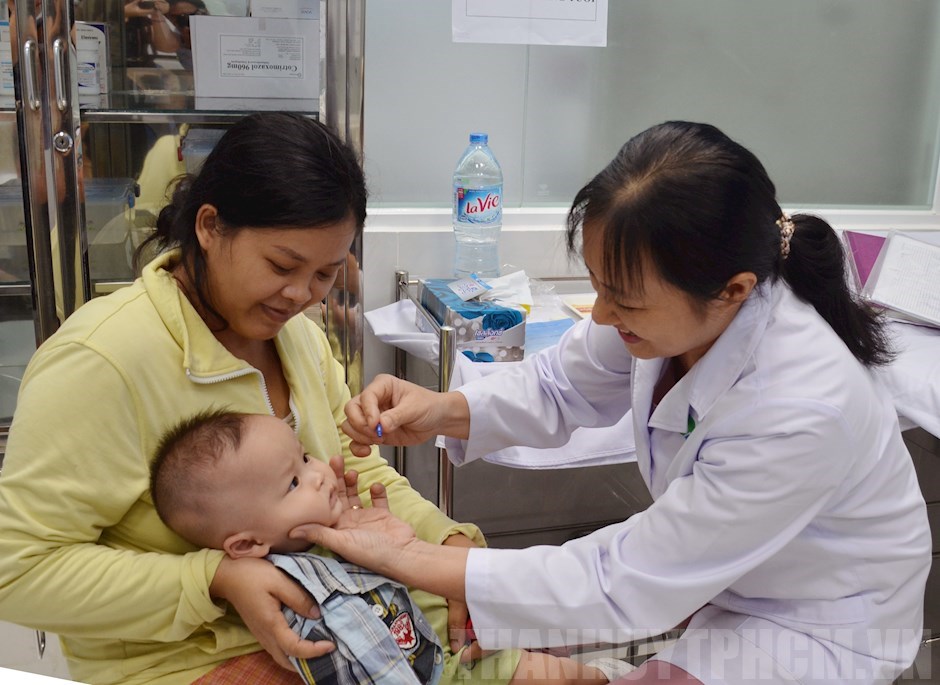 Cho trẻ uống vitamin A tại Trạm Y tế phường 13, Quận 3 (ảnh: Đan Như)(Thanhuytphcm.vn) - Chiến dịch bổ sung vitamin A liều cao cho trẻ từ 6 – 36 tháng tuổi tại TPHCM sẽ được diễn ra trong 2 ngày 1 và 2/6/2019. Trong thời gian này, phụ huynh cần đưa trẻ 6 – 36 tháng tuổi đến các điểm uống tại Trung tâm Dinh dưỡng hoặc các điểm uống tại phường, xã, thị trấn, để được uống vitamin A liều cao dự phòng. Mỗi liều dự phòng có thể bảo vệ trẻ trong thời gian từ 4 – 6 tháng.