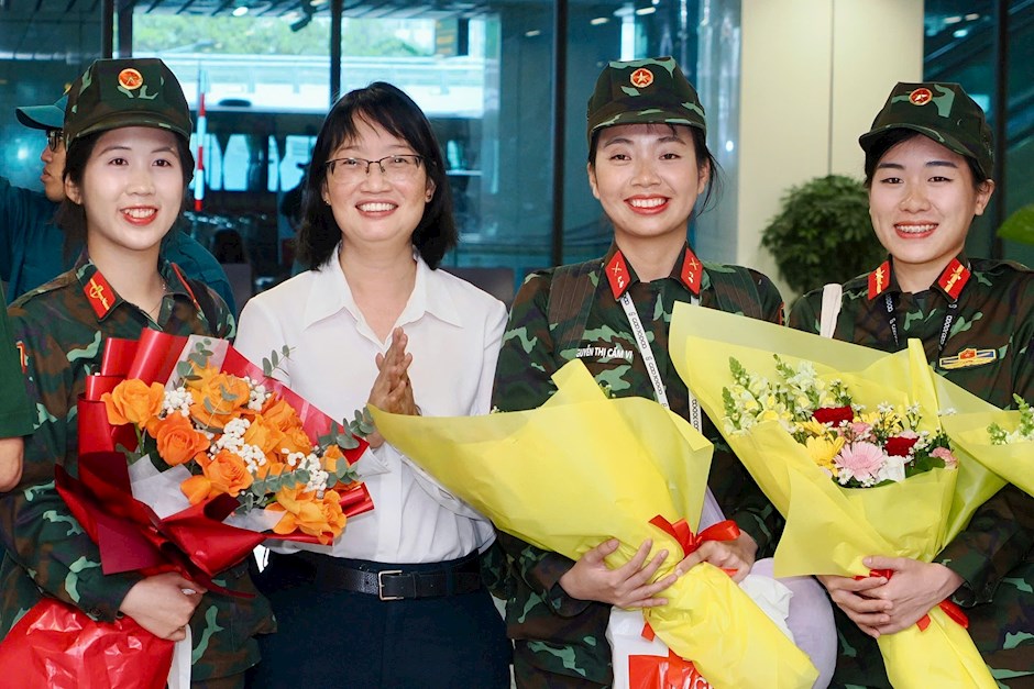 Phó Chủ tịch UBND TPHCM Trần Thị Diệu Thúy tặng hoa chúc mừng các lực lượng tham gia nhiệm vụ A80 trở về. (Ảnh: SGGP)Ôm 2 con vào lòng, bà Hiền vừa cười vừa rưng rưng nước mắt: "Nhìn các con trên truyền hình, tôi vừa thương vừa lo, nhưng trên hết là sự xúc động và niềm tự hào. Suốt mấy tháng trời xa nhà, tôi luôn mong các con khỏe mạnh và hoàn thành tốt nhiệm vụ. Hai chị em cùng góp mặt trong sự kiện lịch sử trọng đại, người làm mẹ như tôi không còn gì hạnh phúc hơn".