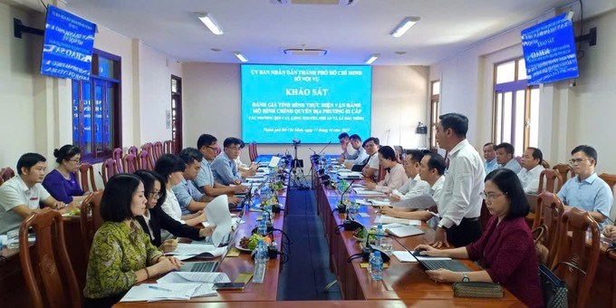 Tham dự buổi khảo sát có ông Mai Đức Thiện, Phó Vụ trưởng Vụ Pháp chế, Bộ Nội vụ; ông Phạm Văn Tuyên, Phó Giám đốc Sở Nội vụ TPHCM; cùng lãnh đạo các xã, phường, phòng, ban liên quan.