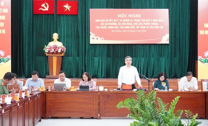 Ngày 2/4, đồng chí Nguyễn Phước Lộc, Ủy viên Trung ương Đảng, Phó Bí thư Thành ủy, Chủ tịch Ủy ban MTTQ Việt Nam TPHCM chủ trì hội nghị giao ban sơ kết quý 1 và nhiệm vụ trọng tâm quý 2/2026 của 8 phường, xã: Hòa Hưng, Chợ Lớn, Phước Thắng, Tân Phước, Đông Hòa, Tân Đông Hiệp, Hồ Tràm và Tân Vĩnh Lộc.