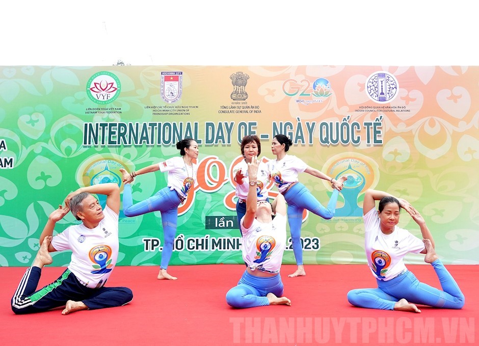 Bài đồng diễn Yoga trên nền nhạc bài hát “Bên tượng đài Bác Hồ” khai mạc chương trình giao lưu nghệ thuật biểu diễn Yoga(Thanhuytphcm.vn) - Ngày 21/6, Tổng Lãnh sự quán Ấn Độ tại TPHCM phối hợp với Liên hiệp các Tổ chức Hữu nghị TPHCM - Hội Hữu nghị Việt Nam Ấn Độ TPHCM tổ chức chương trình Ngày Quốc tế Yoga lần thứ 9 (9th International Day of Yoga) năm 2023 tại đường Lê Lợi (khu vực giao giữa đường Nam Kỳ Khởi Nghĩa - Lê Lợi - Pasteur), Quận 1.