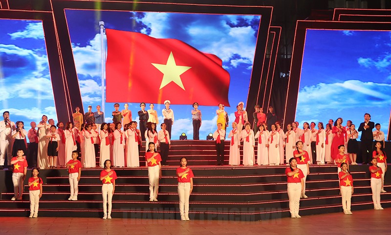 Chương trình cùng hát vang bài “Quốc ca”.(Thanhuytphcm.vn) – Tối 2/9, tại tuyến đường đi bộ Nguyễn Huệ, diễn ra chương trình nghệ thuật với chủ đề “Việt Nam - Niềm tin ngời sáng”, kỷ niệm 78 năm ngày Cách mạng Tháng Tám (19/8/1945 - 19/8/2023) và Quốc khánh nước Cộng hòa Xã hội chủ nghĩa Việt Nam (02/9/1945 - 02/9/2023), kỷ niệm 78 năm Ngày Sài Gòn khởi nghĩa giành chính quyền (25/8/1945 - 25/8/2023). Chương trình do Ban Tổ chức Kỷ niệm các ngày Lễ lớn TPHCM tổ chức; Trung tâm Ca nhạc nhẹ Thành phố thực hiện.