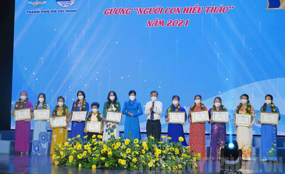 Lãnh đạo TP tuyên dương điển hình Người con hiếu thảo năm 2021(Thanhuytphcm.vn) - Tối 29/12, tại Nhà văn hóa Thanh niên, Hội Liên hiệp Phụ nữ TP phối hợp với Hội Liên hiệp Thanh niên Việt Nam TPHCM tổ chức lễ tuyên dương gương “Người con hiếu thảo” năm 2021.