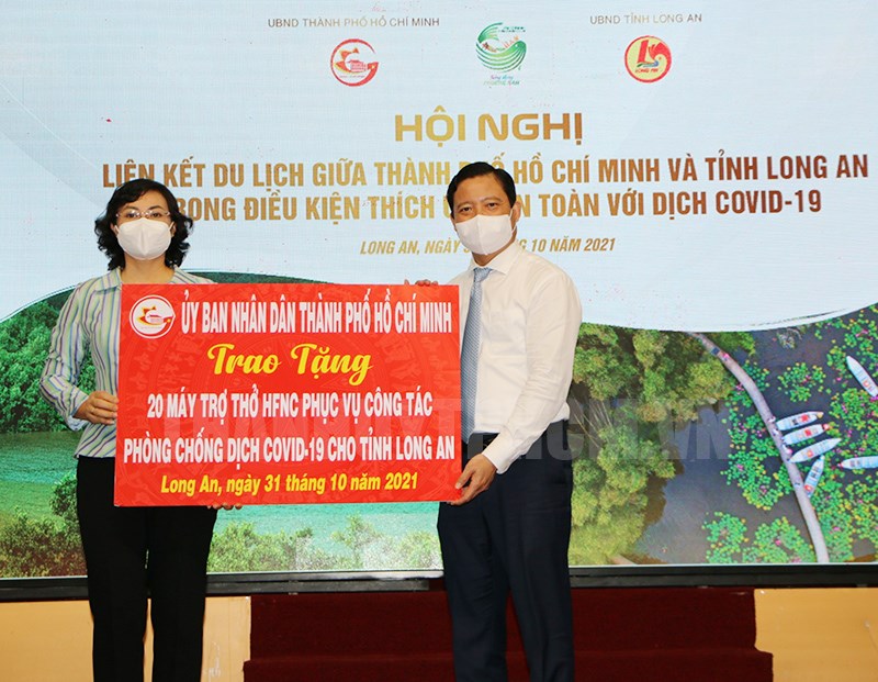 TPHCM trao tặng 20 máy trợ thở phục vụ công tác phòng chống dịch Covid-19 cho tỉnh Long An.(Thanhuytphcm.vn) - Ngày 31/10, UBND TPHCM cùng Sở Du lịch TPHCM phối hợp với UBND tỉnh Long An và Sở VHTTDL tỉnh tổ chức chương trình hội nghị liên kết du lịch giữa TPHCM và tỉnh Long An trong điều kiện thích ứng an toàn với Covid-19.