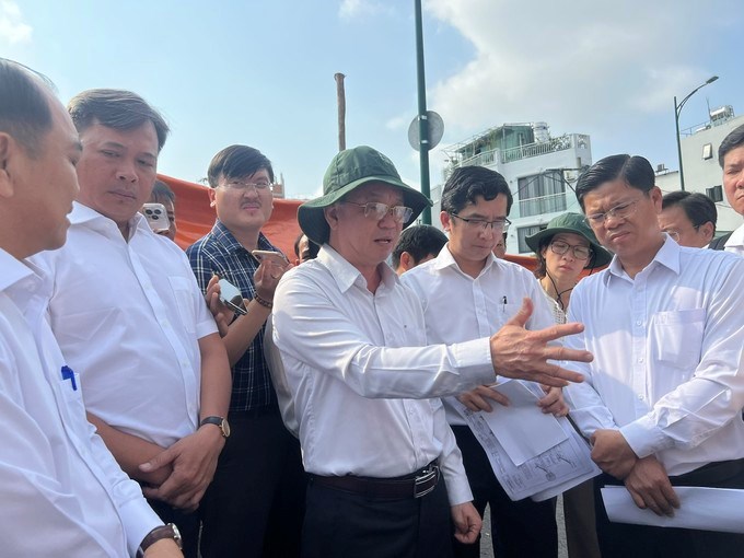 Phó Chủ tịch UBND TPHCM Bùi Minh Thạnh kiểm tra một số khu vực có nguy cơ sụt lún. (Ảnh: SGGP)Kết luận buổi khảo sát, Phó Chủ tịch UBND TPHCM Bùi Minh Thạnh nhấn mạnh đây là sự cố nghiêm trọng, cần xử lý ngay để tránh lan rộng. Trước mắt, lãnh đạo TPHCM thống nhất áp dụng cơ chế xử lý khẩn cấp theo Nghị định 175/2024/NĐ-CP, yêu cầu các sở, ngành và địa phương trong ngày phải tham mưu, đề xuất giải pháp cụ thể để UBND TPHCM xem xét, cho chủ trương triển khai ngay trong chiều cùng ngày.